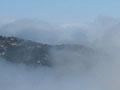 Neil and Gwyn reside in the 2nd cottage — Neil grew up on Deal as a boy, his father being the lighthouse keeper. This trip is a visit to his boyhood. Sea fog all around the islands, we can't see the water at all. After lunch, Tony drives Neil and Gwyn up to the lighthouse to check out the weather for a potential helicopter landing. He offers Kev and I a lift on his six-wheeler. THAT is the way to move: sitting on the six-wheeler, moving without moving ;) From lighthouse we see sea fog in all directions, only the top of the hills on Deal are in sunshine. The "three boys" are on their way to Flinders now. How are they doing in the sea fog? Will they find their way? Will they get sea sick? And what will our decision tomorrow be if the fog doesn't lift? We had hoped to look back over Wright Rock and Craggy, instead we wonder how kayaking long distances in fog might feel like?