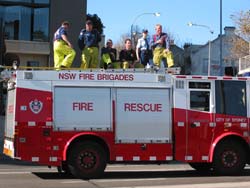 On August 11, 2002, 65,000 runners, joggers, powerwalkers, and walkers invaded the CBD for this year's City2Surf race. The course of 14 km heads to the east and south and finishes at famous Bondi Beach. Claudia had trained for the race, Peter went photo shooting. Under a magnificient sun, the race was transformed into an unparalleled city party: the runners were watered by private people with their garden water hoses, many Jazz bands played along the course and the runners applauded cheerfully while running and at the end of this sweat-tour, a refreshing swim in the sea was awaiting. See also the Monthly Report August 2002.
